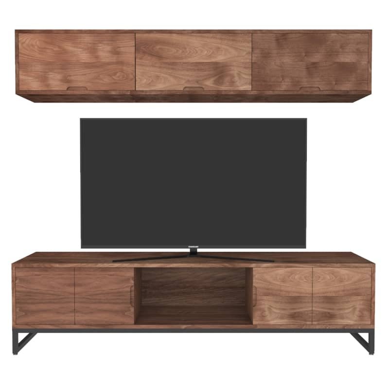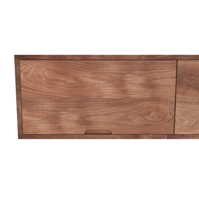 El mueble de TV Won está hecho chapa de Nogal y tiene acabado en poliuretano mate para máxima durabilidad, su estructura metálica cuenta con acabado electrostático. Ademas de contar con niveladores